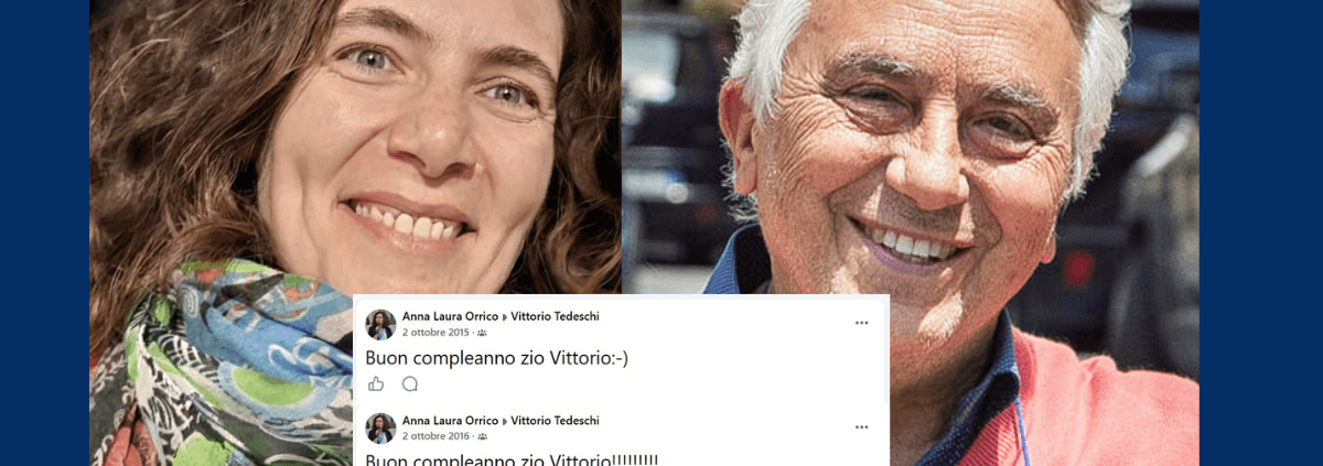 “Buon compleanno zio Vittorio!” ha scritto per molti anni Anna Laura Orrico sulla bacheca Facebook di Tedeschi (almeno dal 2015 al 2017, l’anno prima di diventare per la prima volta deputata).