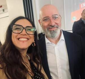 Lidia Vescio con Stefano Bonaccini con il microblading