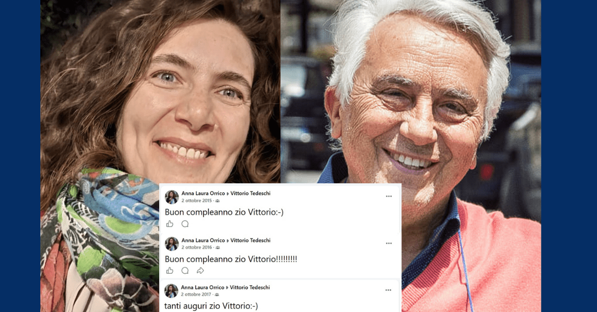 Buon compleanno zio Vittorio!” ha scritto per molti anni Anna Laura Orrico sulla bacheca Facebook di Tedeschi (almeno dal 2015 al 2017, l’anno prima di diventare per la prima volta deputata).